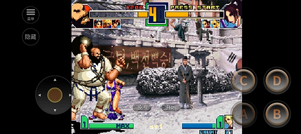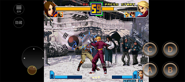 2、右侧的四个键位依次为轻拳【A】、轻腿【B】、重拳【C】、重腿【D】;