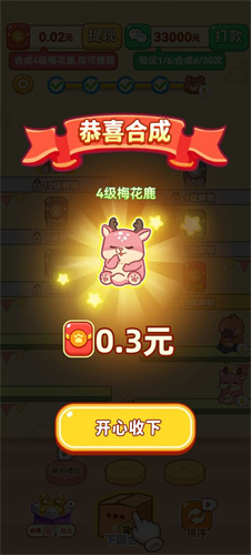 是真的,新人只要合成三级小猪,就能提现0.12;合成四级梅花鹿,就能提现0.3。