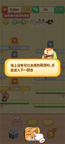3、场上没有萌宠可以合成时,可以点击下一回合。