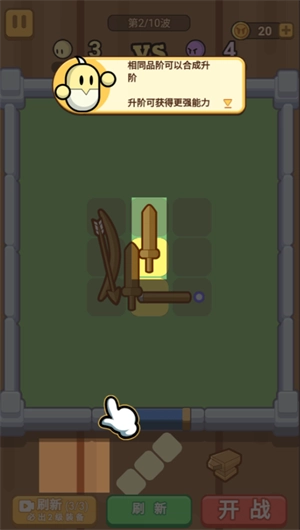2、将两个相同的武器士兵拖动到一起可以进行升级