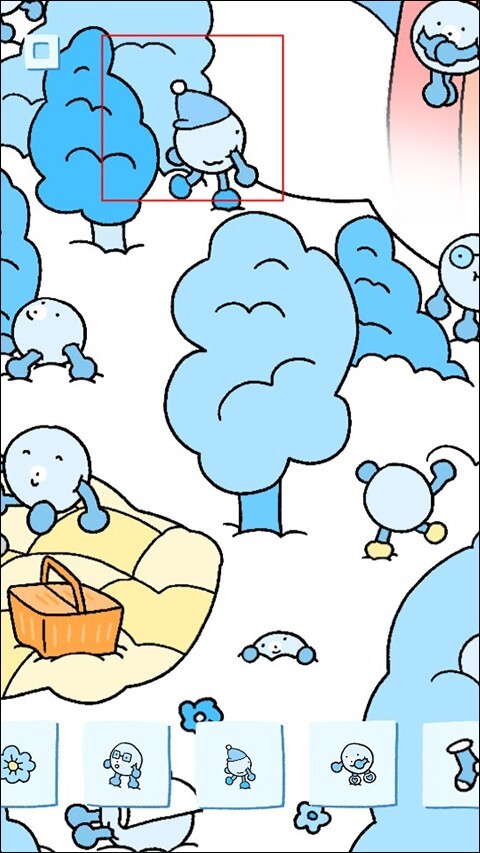 1、先来看第一个小云朵人的位置,它在左上角的那片森林里,如图所示。
