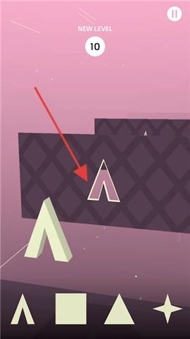 进入游戏后,可挑选三角形、正方形这类基础图形,通过滑动屏幕来切换形状,再对准障碍物的缺口调整好形态,为穿越做好准备。