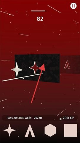 3、顺利通过所有障碍物到达终点就能完成关卡,收集到的能量晶体可以解锁六边形、星形等更高级的图形以及特效外观。