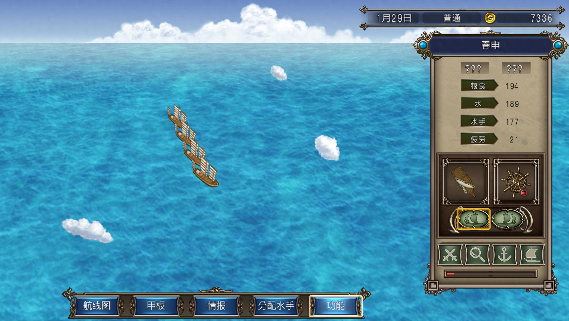 其次,我们可以缩减水手的数量。这一做法能够延缓粮食与水资源的消耗速度。但需要注意的是,减少水手存在一个底线,那就是必须保证必要的水手人数。一旦水手数量低于这个底线,船只的航行速度就会随之减慢,同时水手的疲劳程度也会上升得更快。