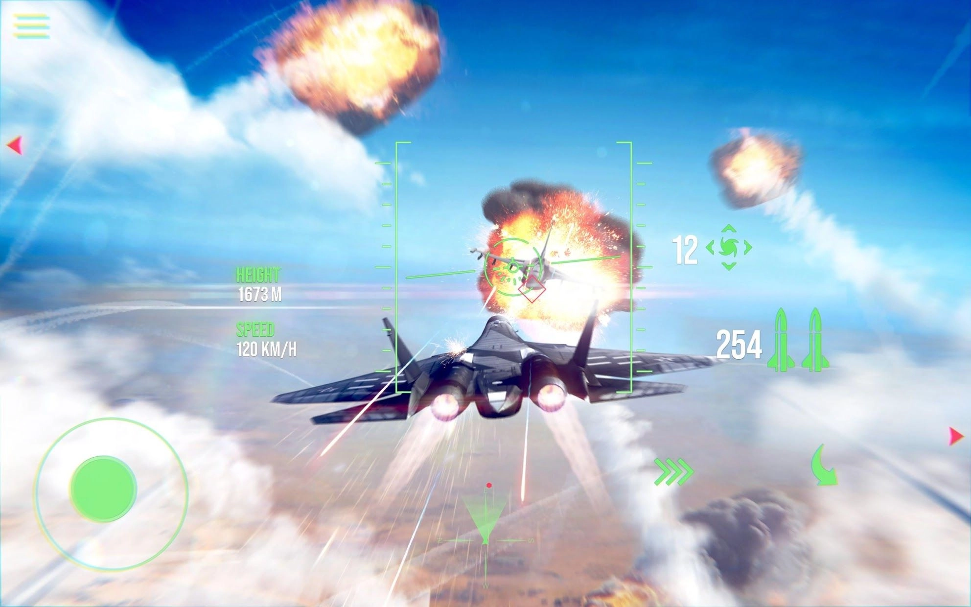 在这个充满刺激与紧张感的游戏世界里,你将化身一名飞行员,驾驭各式战机,投身于硝烟弥漫的激烈空战。六点方向,也就是飞机正后方,是敌人最常发动突袭的薄弱点。空战中务必保持高度警惕,时刻紧盯敌方动态,尽量避免被敌人从身后偷袭。唯有牢牢把握这一关键原则,才能在空中真正展现飞行高手的卓越实力。因此,若你渴望体验极致的战机操控与热血沸腾的空中对决,这款空战游戏无疑是你的不二之选!准备好迎接高空的挑战了吗?快来角逐空战之王的荣耀吧!