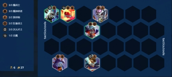 3魔神能额外提供一个单位参战,4人口时先别上3魔战,等5人口或者6人口再上。中期要是胡卡萨丁,就能直接玩到7魔战的卡萨丁阵容;要是胡阿卡丽和尼菈,既可以玩阿卡丽和尼菈双核心(双c)的阵容,也能直接过渡到8人口玩魔战滑板鞋的阵容。
