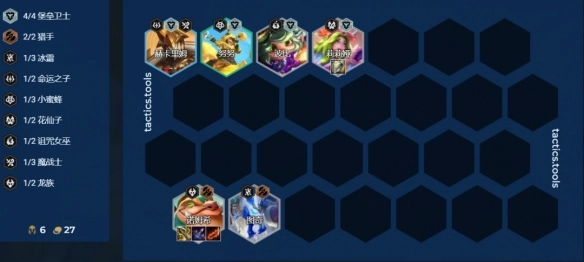 这套阵容核心是两名猎手搭配前排,前期诺姆希能打出不错的伤害。前排可从换型、重装、堡垒中任选其一。若选择换型过渡,后期能顺利转型为4换型4枪手的维鲁斯阵容;要是选堡垒过渡,也能平稳发展玩到堡垒魔战滑板鞋阵容。