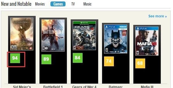 在近期推出的新作里,《文明6》的评分是最高的,紧随其后的是《战地1》,从这一点就能看出《文明6》是否好玩了。
