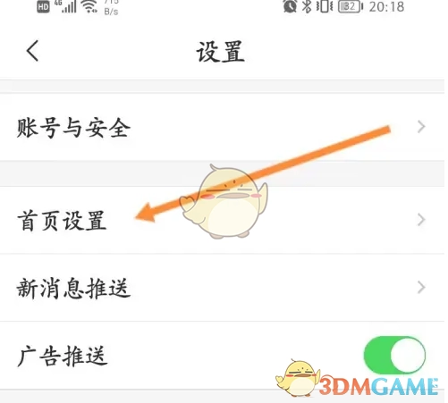 3、点击上方的首页设置选项。