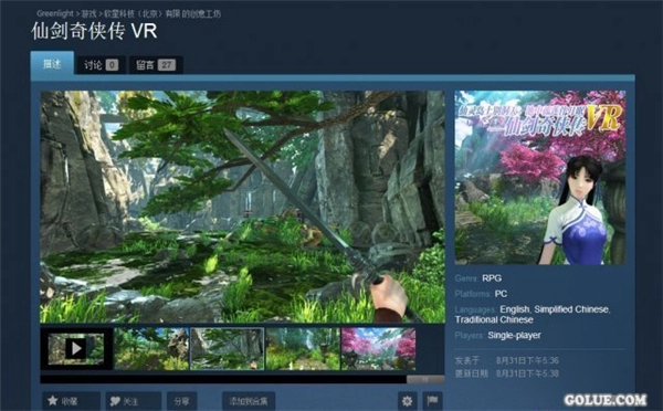 还记得今年CJ2016上大宇公开的《仙剑奇侠传》VR版演示吗?借助VR技术,我们这些宅家玩家终于能“名正言顺”地窥见女神赵灵儿沐浴的场景了!如今《仙剑奇侠传》VR版已正式登陆Steam青睐之光平台,计划于今年第三季度推出。