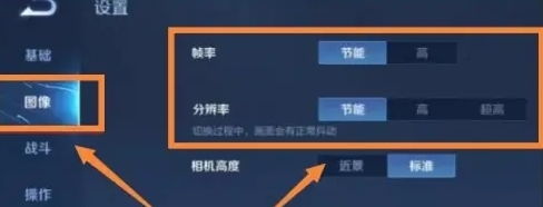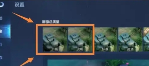 3.在此处把【帧率】显示选项设为节能模式,接着在下方将【画面总质量】调整为标准档位,完成这样的设置后,能够显著改善苹果13手机运行王者荣耀时出现的卡顿状况。