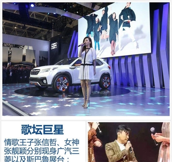 当天的北京车展上,品牌展台还迎来了众多明星助阵:斯柯达展台有古惑仔五兄弟登场,唤起不少人的青春情怀;奇瑞展台邀请到“跑男小猎豹”郑恺为新车代言;猎豹汽车展台则有刘涛与汪涵现身;情歌王子张信哲亮相广汽三菱展台,张靓颖则来到斯巴鲁展台;体育界的李大双、李小双、易建联以及“追风少年”欧文也齐聚现场,分别现身众泰、东风日产和MG品牌的发布会。各大品牌集结如此强大的明星阵容,着实令观展者为之震撼。