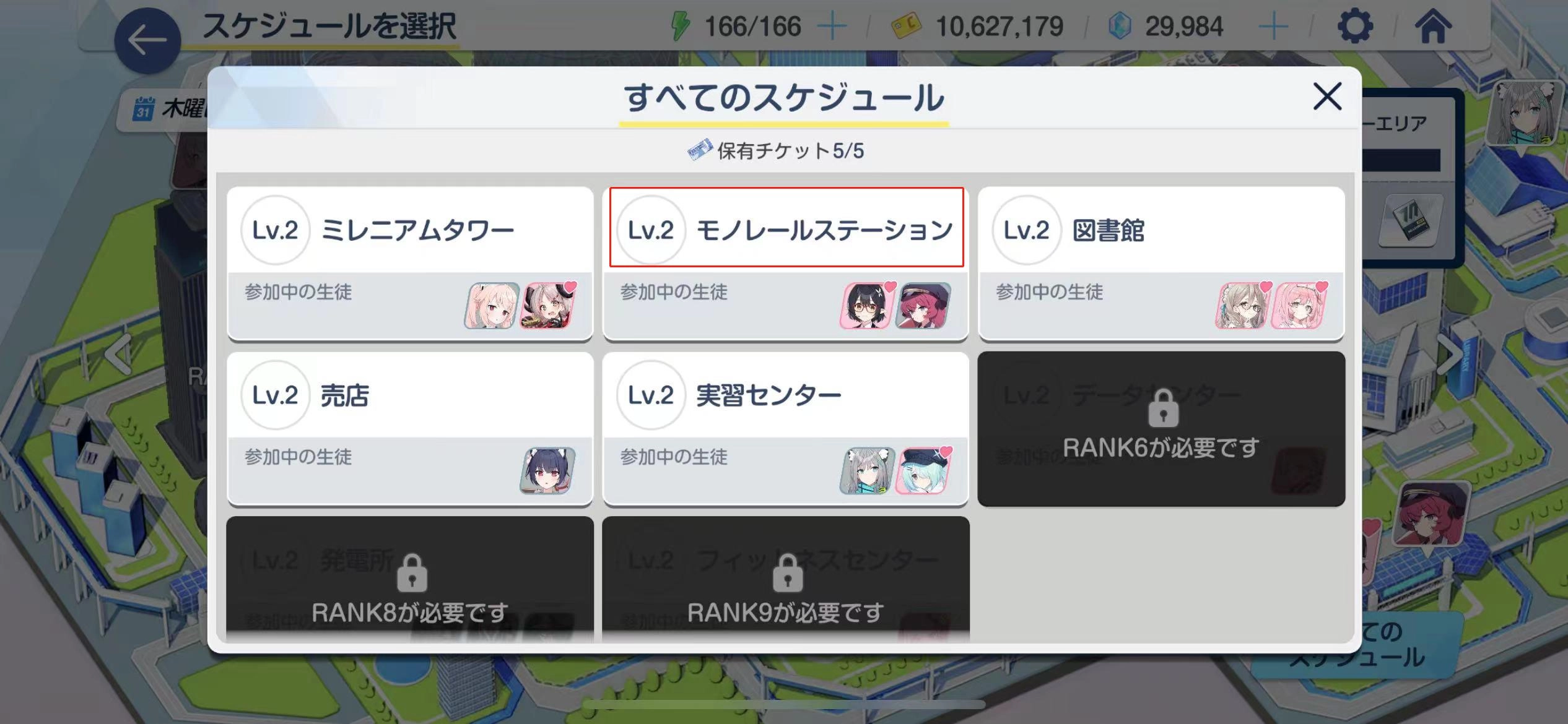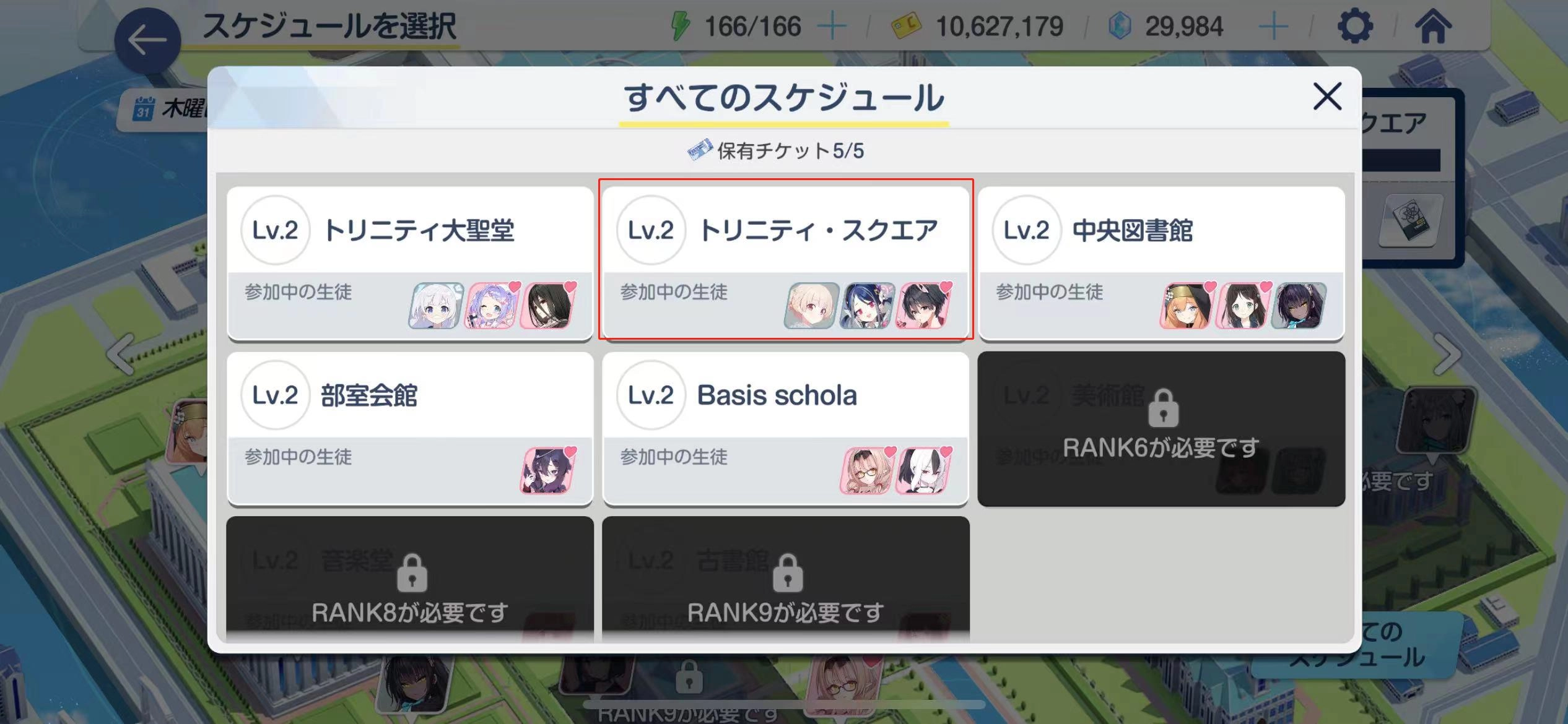 5、日程中点击2次已拥有的格黑娜学园学生。
