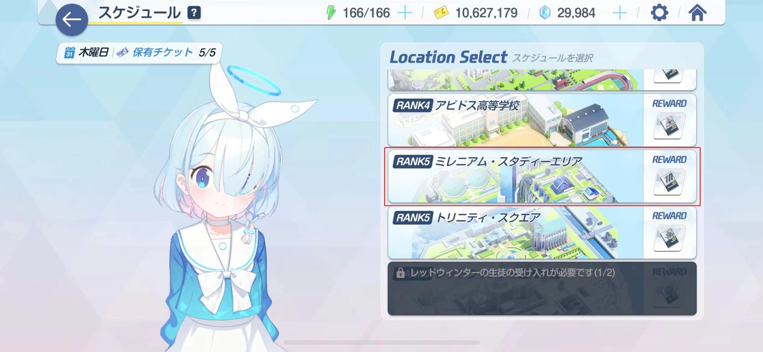 5、日程中点击3次已拥有的千禧学园的学生。
