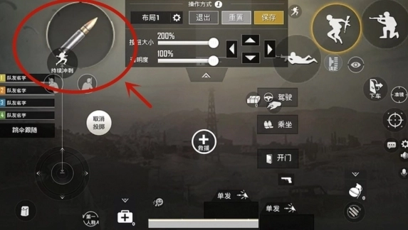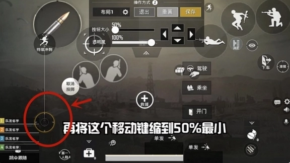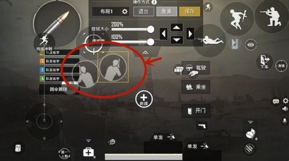 01、把下蹲、跳跃、趴下这三个按键调整到最大尺寸,挪到屏幕右上角的位置,用右手食指来操控这三个键位。