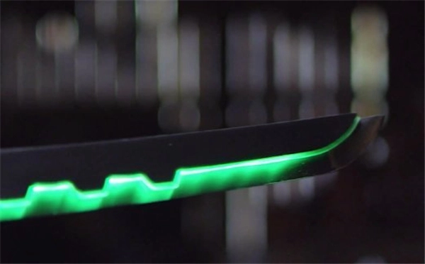 源氏手中的龙刃虽属日本刀范畴,却与ManatArms之前打造的同类刀具有所不同。一来龙刃的刀柄设计远比传统日本刀复杂,二来团队希望严格还原游戏细节——比如让刀具像游戏里那样发光,这无疑增加了技术难度。不过凭借精湛手艺,他们最终造出了既酷炫又不失实用性的作品,既能耍帅也能胜任实际切割需求。