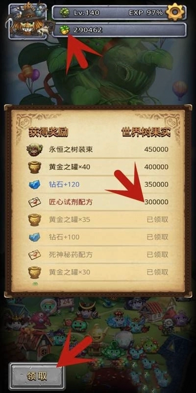 4、当“世界树果实”的数量满足要求,即达到300000个果实时,点击领取。