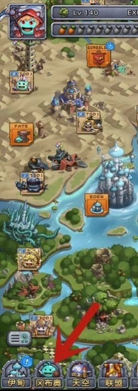 1. 进入游戏之后,于主页面点击左下角的第二个图标 “冈布奥”