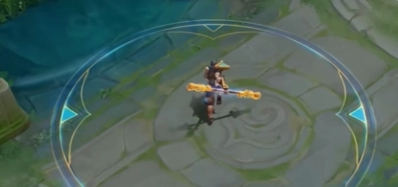 4、外观:神迹守卫作为孙悟空的勇者限定皮肤,整体采用金色与蓝色进行配色,技能元素包含蓝色三角符号以及金边效果。