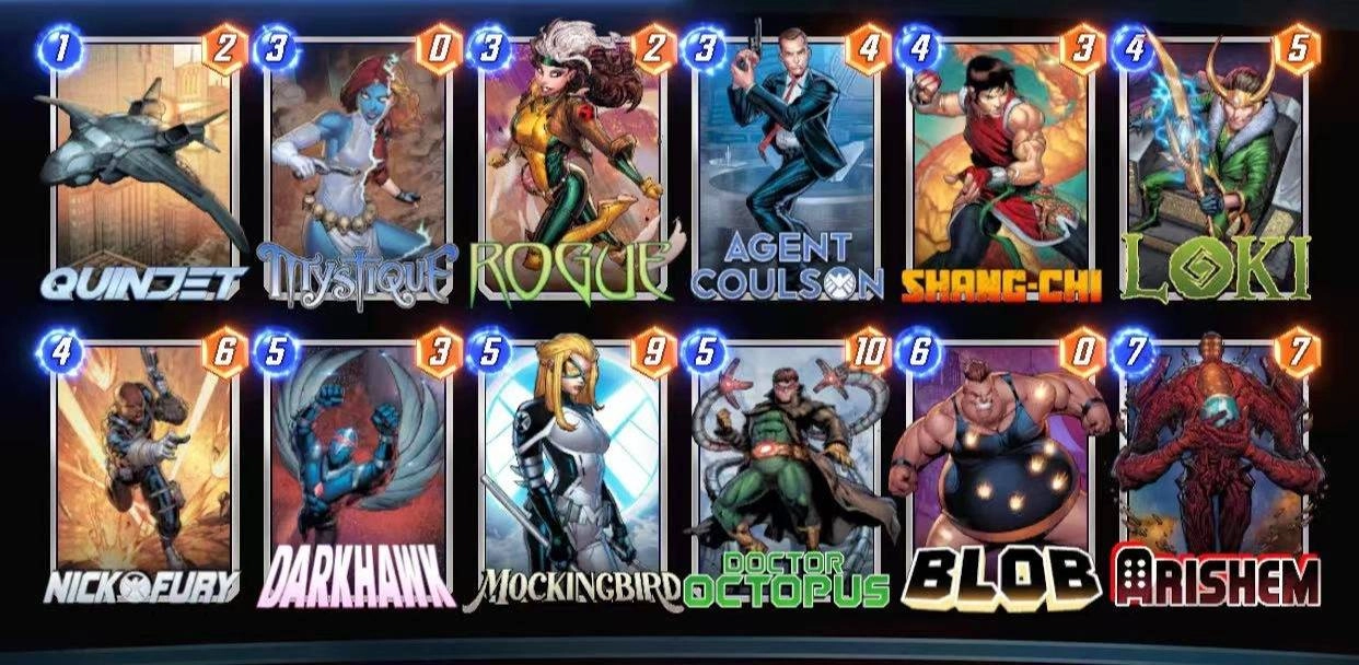 在游戏过程中,我们得依据手牌以及战场的实际状况,灵活地对卡牌进行搭配,构建出能够压制对手的组合。关于心理战术方面,共用回合制增添了心理战术的维度,尤其是在《漫威终极逆转》里翻倍功能的运用。我们要借助信息差误导对手、隐匿真实牌力、点击翻倍进行诈唬等方式,以此获取战术优势。接下来,让我们通过一个具体的游戏实例,对共用回合制在《漫威终极逆转》中的实际应用展开分析。此处我选用的是一套在当前环境下极为强势的阿里瑟姆卡组(玩家们戏称其为三体人卡组,而将其他卡组一概称作地球人卡组,这种诙谐的称呼体现了阿里瑟姆卡组的强大) 。