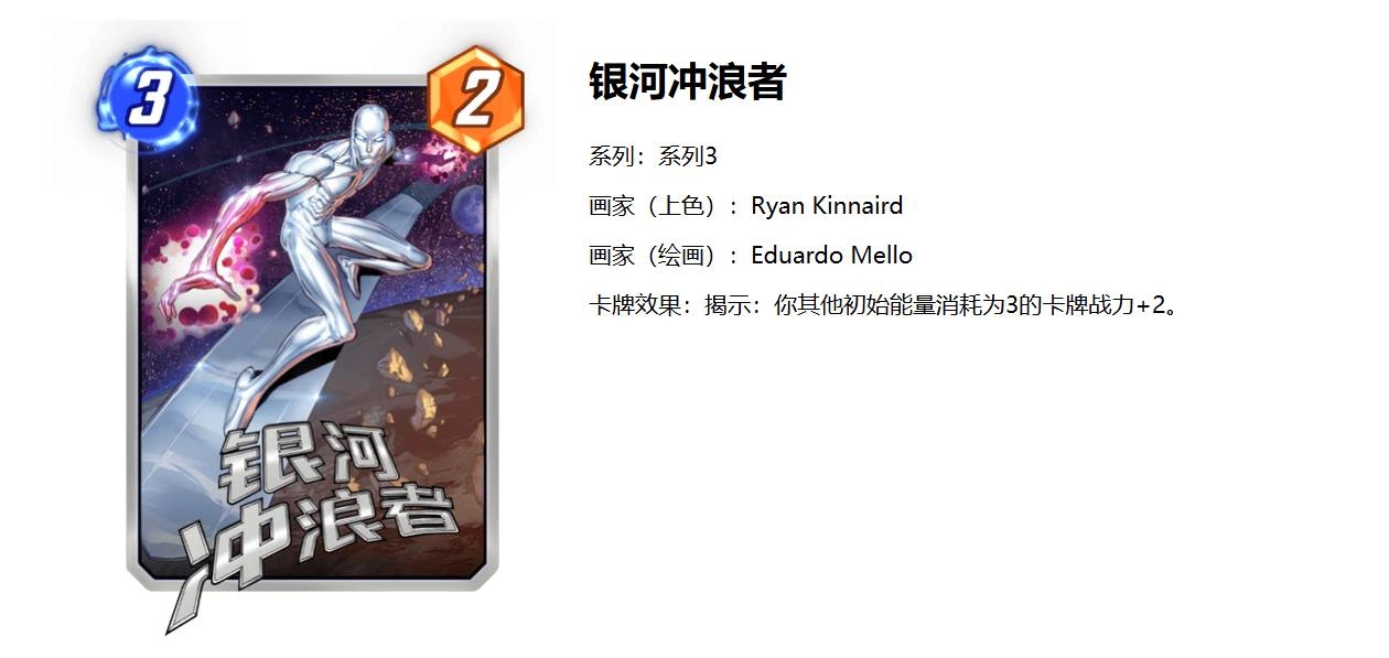 银影侠凭借自身能力与宇宙能量,能够以光速飞行,穿越维度障碍,甚至感知时间的流逝。他的滑板由相同的宇宙能量构成,是其探索宇宙、执行任务的关键工具。尽管曾被剥夺宇宙能量,但在与行星吞噬者的斗争中,他最终恢复力量,继续在宇宙中发挥重要作用。以上便是3DM小编整理并带来的《漫威终极逆转》生化女银滑卡组搭配玩法分享。想要获取更多精彩内容,敬请点击关注firedg!