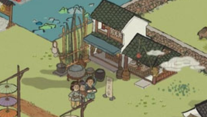 3、玩家若想获取鱼竿,需前往下图所示的渔具店,凭借特定道具与之对话。随后,便可手持鱼竿前往养龟池,开启钓草龟的活动。