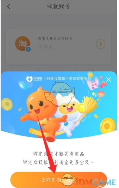 5、在底部弹出的页面中,点击“去绑定淘宝账号”。