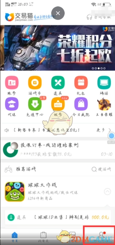 1、第一步,在交易猫页面,点击右下角的“个人中心”选项。