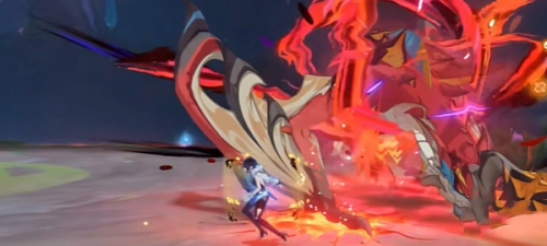 5、当BOSS腾空之际,切换为水属性角色对其进行攻击,通过这种互动来解除它的防御。