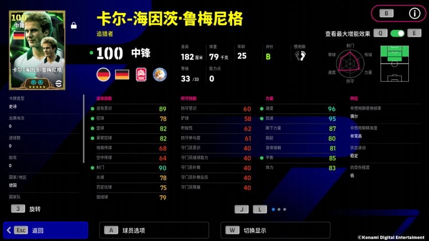 鲁梅尼格自带特殊技能【无定型射门】,即使来球角度不佳,他也能不作调整轰出高质量的射门!