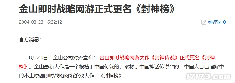 基于此,同年9月,烈火工作室在金山满怀期待中悄悄诞生了,这是金山继珠海西山居工作室之后,第二个进行网游研发业务的工作室,而他们第一个研发的项目就是《封神传说》。