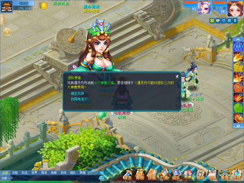 成为大神兽后,它们还能进行3次进阶,不过这3次进阶仅提升资质,不会增加技能。要是你的大神兽已经完成3次进阶,就可以用30个神兽之魂到进阶使者那里兑换通灵丹,使用后技能数量会增加1个。