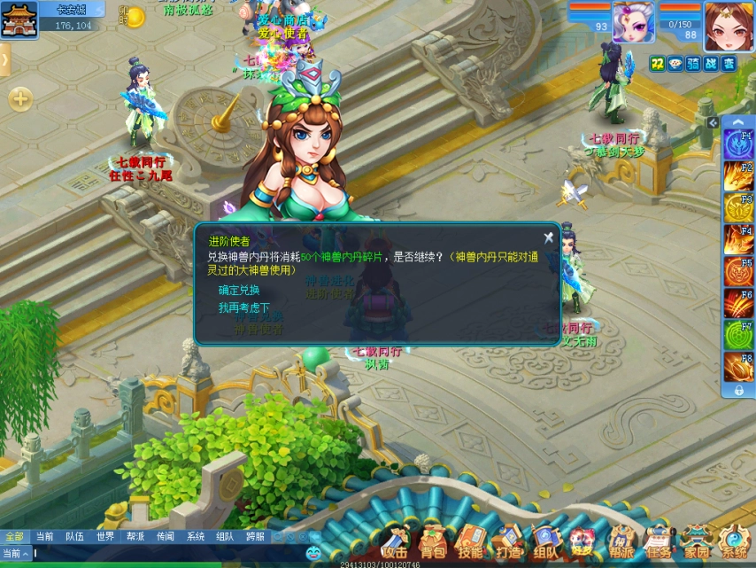 大神兽完成通灵之后,技能数量应该就达到6个了。要是还想进一步增加技能,就得去参加宠物竞技活动来获取神兽内丹碎片,然后到进阶使者那里兑换神兽内丹。这种内丹最多能得到4个,每使用一个都能让技能数量增加1个。