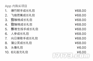 值得注意的是,《植物大战僵尸3》本体免费,但设有10项内购项目,其中爆竹射手成长礼包、飞扇芭蕉成长礼包、猕猴桃成长礼包等8种礼包的定价为68元,而头像礼包和6元首充礼包的价格则为6元。
