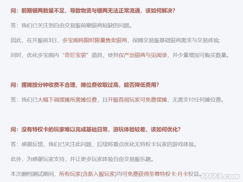 这一创新举措乍看之下相当亮眼,然而玩家在内测体验过程中,却察觉到该服务器存在前期银两匮乏、摆摊收费机制不合理、缺乏特权卡便难以推进游戏进程等诸多问题。针对这些反馈,官方迅速对游戏展开了紧急修复,并依据玩家的建议进行了大规模的优化调整。