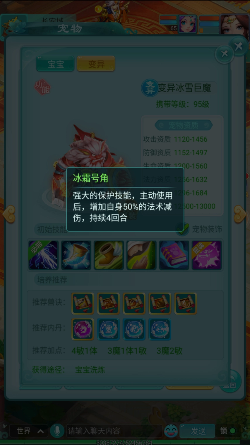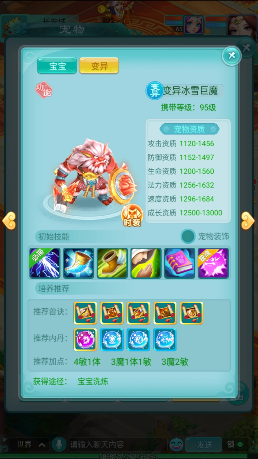 冰雪巨魔的资质呈现出典型的法术宠物特征,其法力资质达到了1632的高数值,不过这并非它最突出的优势——更值得一提的是它的速度资质,竟然高达1684!很难想象,背负着这么多沉重装备的冰雪巨魔,还能保持如此迅捷的移动速度,实在令人惊叹。