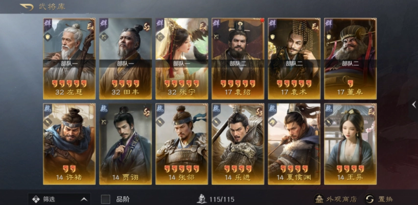 经过17号的鏖战也是成功用这个非满红账号爬上榜一,可以说十分艰难,甚至左田宁只有左慈有2阶,田丰和张宁都是没品阶的。