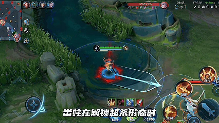 解锁超杀形态后,蚩奼的武器会进化成可远程攻击的弓。她的一技能在位移过程中会同步射出箭矢,命中目标时能施加晕眩控制;要是箭矢落在墙体上,还会束缚范围内的所有单位,效果相当霸道。