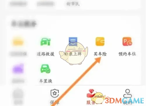 2. 来到服务页面,点击购买车险选项。