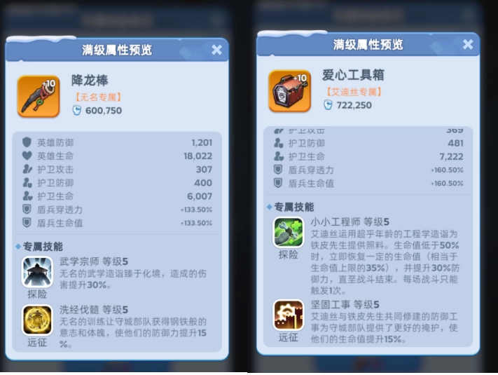 除了英雄技能之外,还有一点值得注意,那就是防守方的优势要略大于进攻方。想必细心的网友也都留意到了这样一个现象:新推出的盾英雄,他们的专武技能在进攻时基本发挥不了什么作用。比如七代盾英雄艾迪丝的专武远征技能,能最高提升守城部队15%的生命值;六代盾无名的专武远征技能,可最高提升守城部队15%的防御力;五代盾赫克托的专武远征技能,则是最高提升守城部队15%的攻击力。