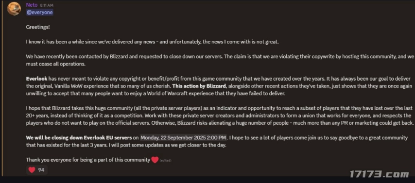 杀鸡儆猴?暴雪广发律师函,多家魔兽私服提桶跑路