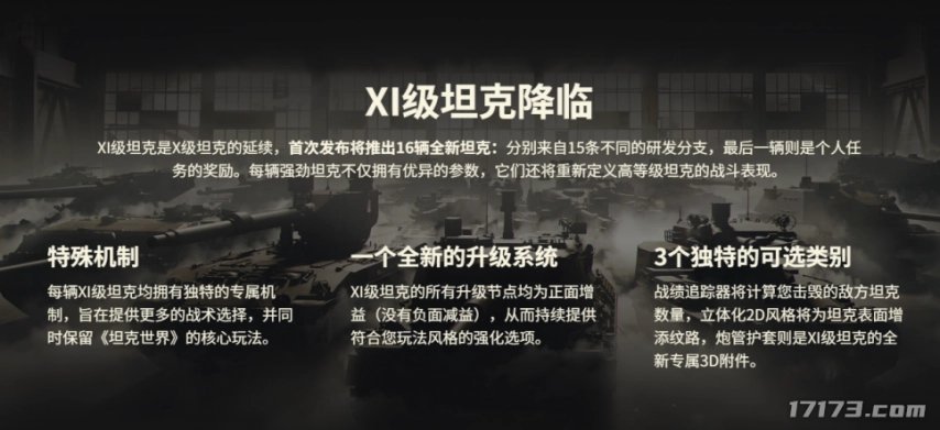 最令人瞩目的,莫过于即将登场的16辆全新XI级坦克。