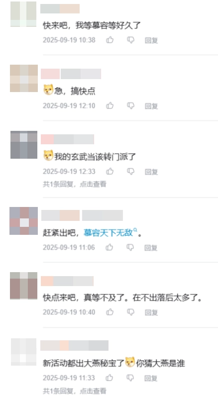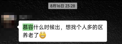 有老哥从8月份就开始念叨:慕容什么时候出,想找个人多的区养老了。