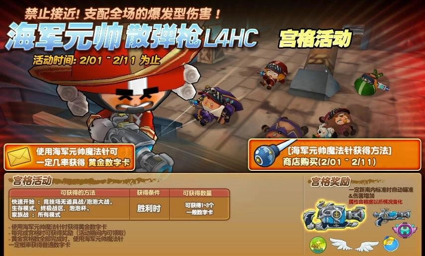 5、武器数值失衡问题:《泡泡战士》里的武器有棉花糖、爆烈、尖锋、猛兽、左轮(Revolver)以及船长系列,不过船长系列作为强度顶尖的武器,得投入不少人民币才能拿到(国服一般要花300元以上,而且和其他服务器比起来还没有大保底机制)。尤其是游戏后期(2019年)上线的海军元帅船长系列,让游戏的体验变得特别割裂,甚至出现了“没海军系列武器这游戏就玩不下去”的情况。