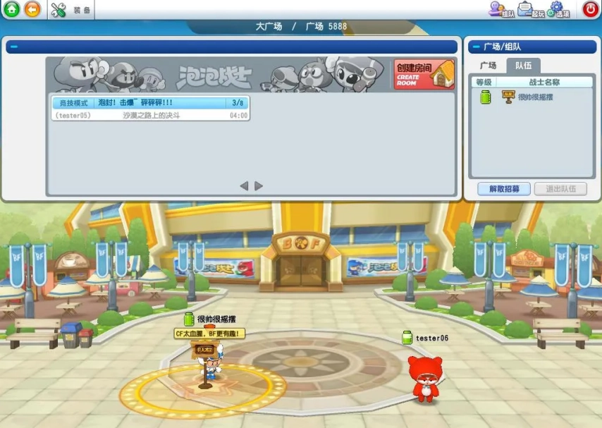 泡泡战士本身是一个社交系统非常强的游戏,各个玩家可以在广场大厅一起聊天、合影等,玩家氛围也非常友好。