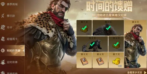3、时间的厚礼:每日登录即可领取奖励,在前8天能够获得3名身负命运的英雄。