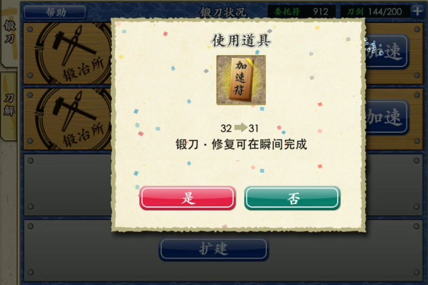与其他的拼运气抽卡的游戏不同,刀剑乱舞中如果玩家用对了公式,甚至可以指定锻出哪一把刀剑。