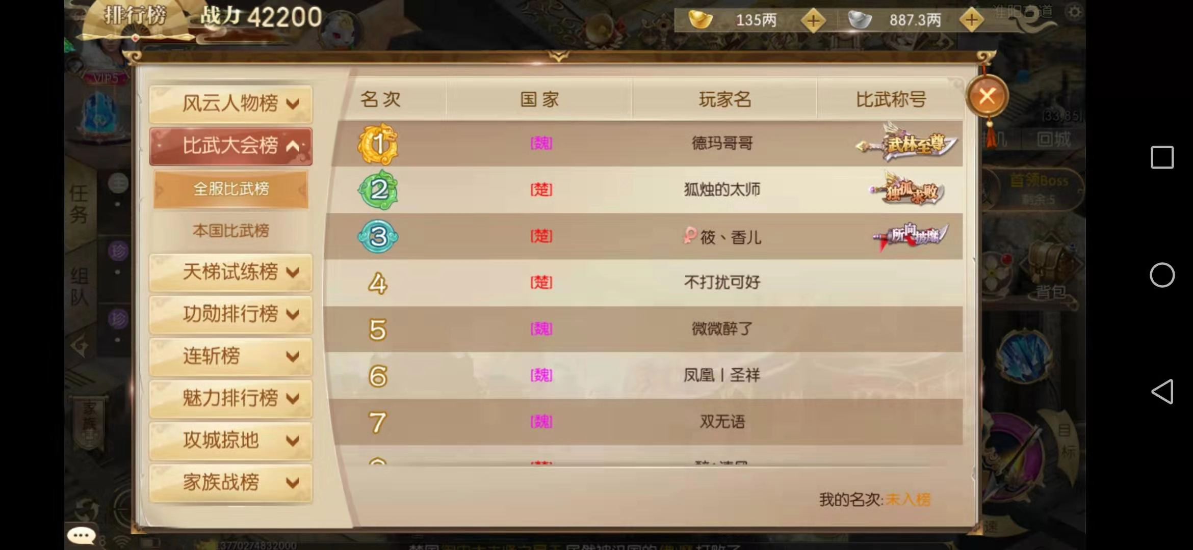 PK类排行称号完全依托个人实力获取,是所有称号里最能彰显个人实力的。比如比武称号,在比武活动里拿下第一的,会获得武林至尊称号;在侠客岛活动中夺得第一的,能得到侠义无双称号;在国战里达成最高连斩数的,则会被授予连斩之神的称号,诸如此类。