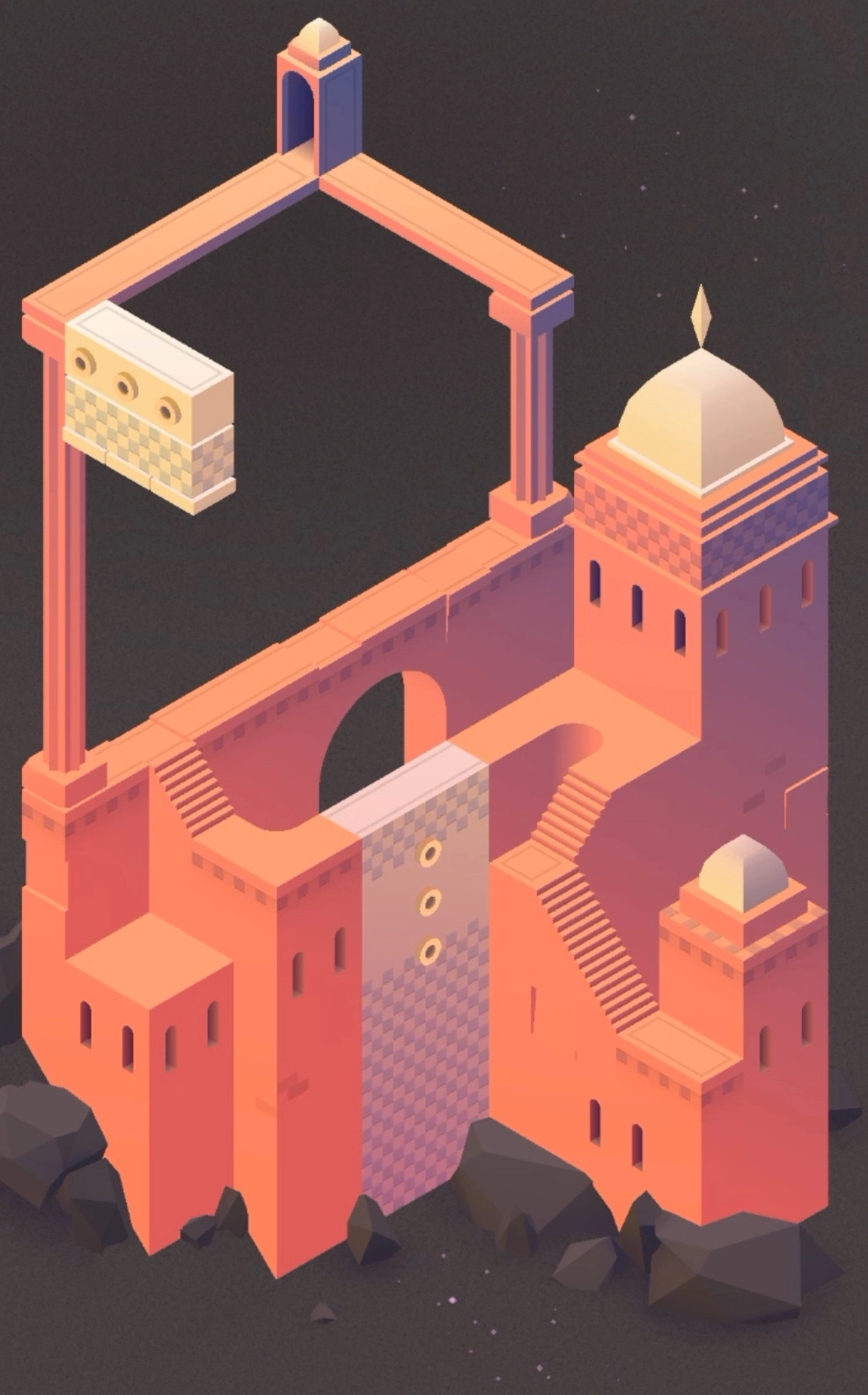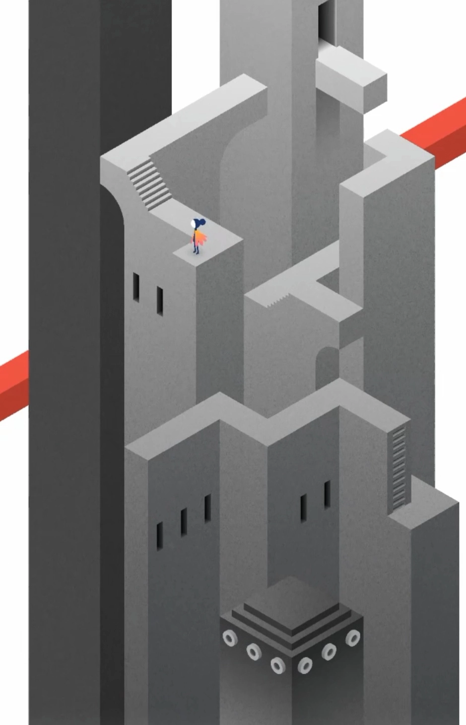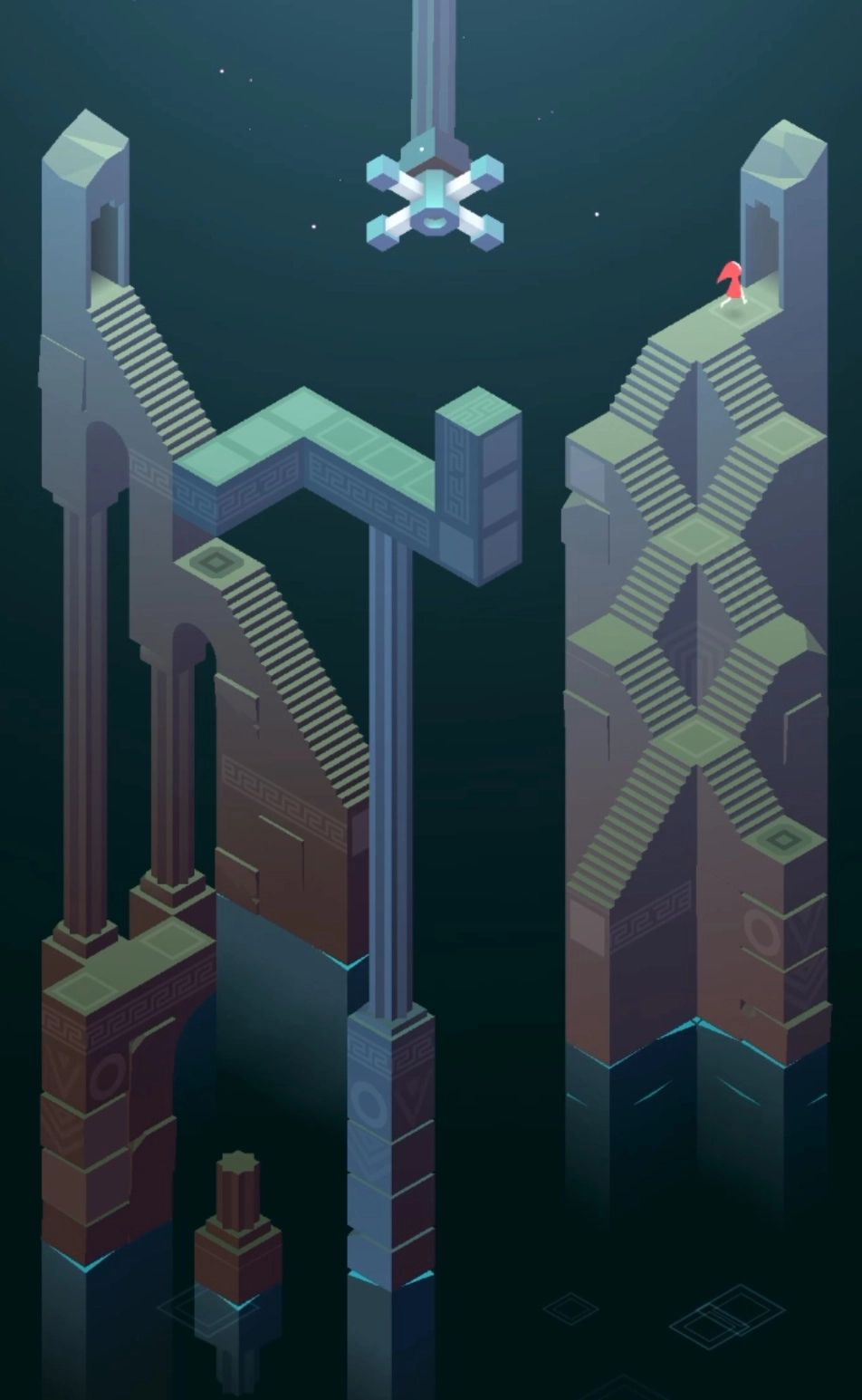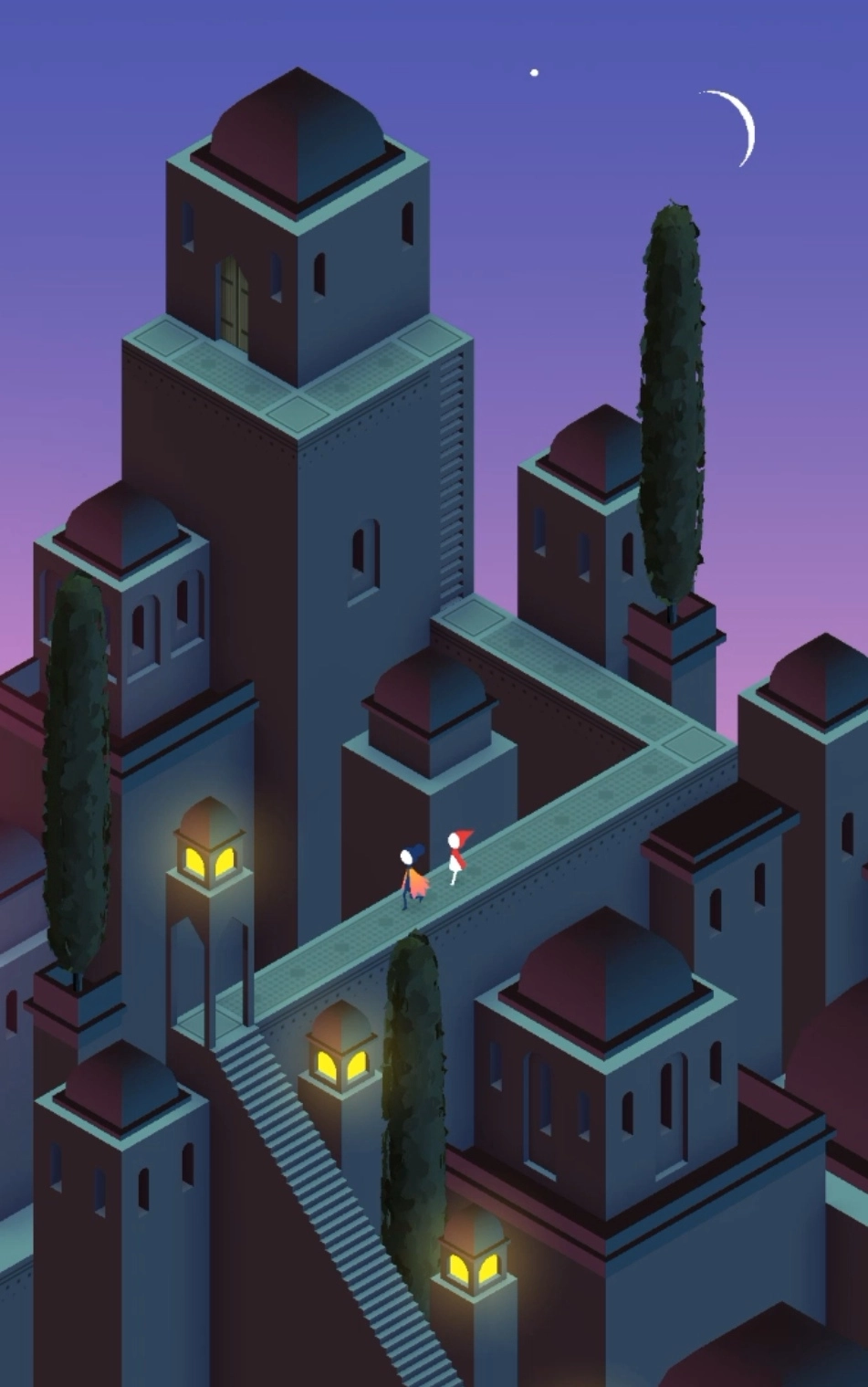 再次来到新的场景,多转几次建筑会来的顶楼出,此时剧情过后,场景又会变化,玩家要上楼按几个按钮并移动,让小人来到新的大门处。开启新的场景,往前走,转动建筑,发现新的大门,进入大门。从门里出来后,一直往上爬,去移动滑动板,通过滑动板来点亮两端灯塔,再前往终点就通过了。