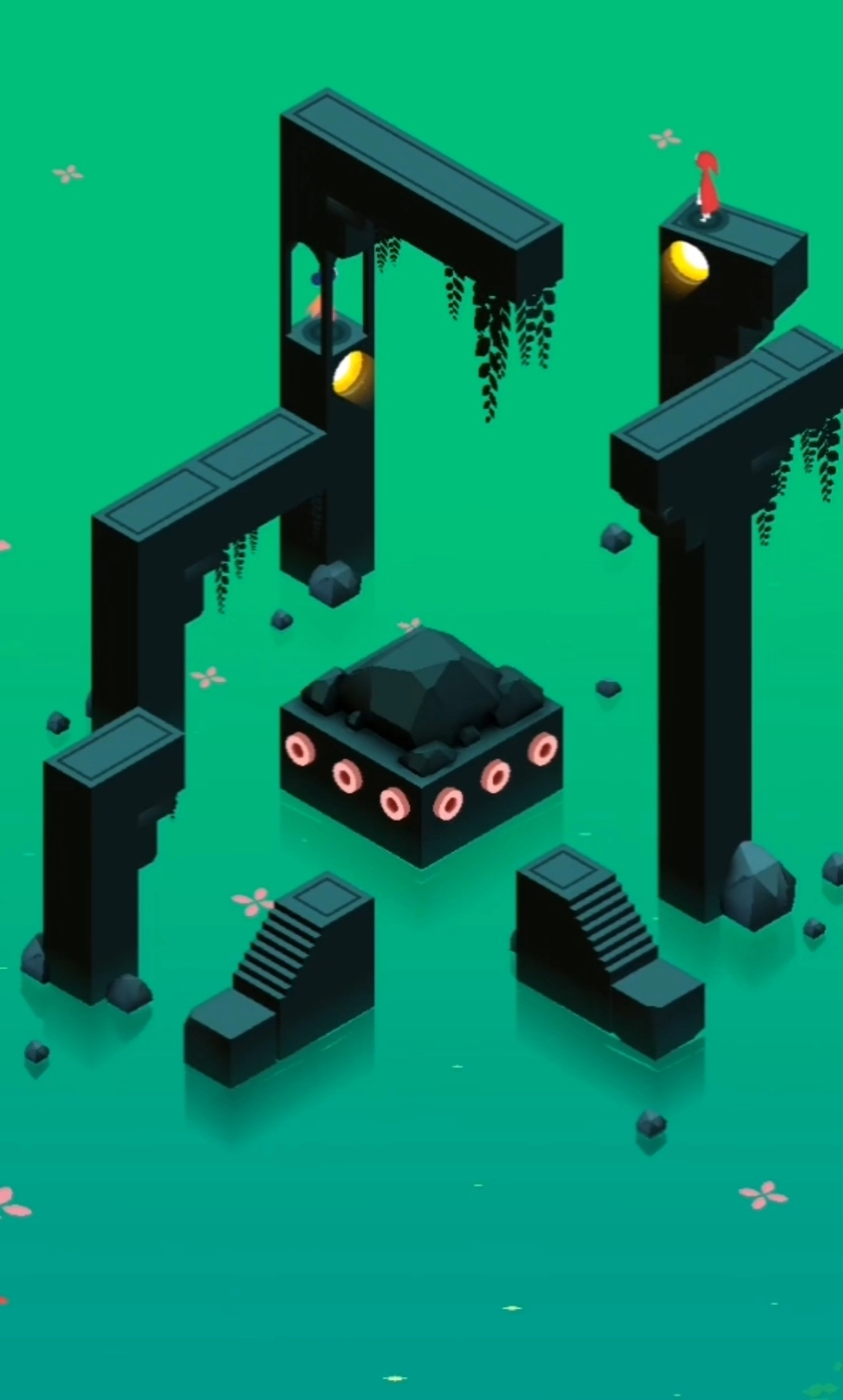 第八章节:本章节有九个场景,基本上都是控制图腾来翻转、连接建筑,从而控制萝尔向门处走,小伙伴们需要注意的一点是在最后一个场景时,要先让萝尔去按住按钮再控制图腾。